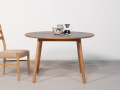 モルタル調の天板に淡褐色できれいな木目が特徴のスンカイ材を組み合わせたシンプルなフォルムのダイニングテーブル。