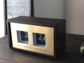 前面には真鍮、そしてフレームにはウッドを使用した置時計です。
