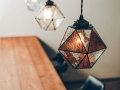 三角形のガラスを一つ一つ手作りで組み合わせて作ったマリーズペンダントライト。レトロなフォルムでありながらすっきりとしたデザインです。