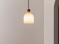ドーム型のガラスシェードの上にウッドボールを添えたペンダントライト。シンプルでありながら印象に残る丸みを帯びたシルエットに北欧建築のエッセンスを感じます。