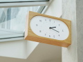 スクエアタイプのウッドフレームに優しい楕円が重なる両面時計。シンプルベーシックなデザインでいろいろな空間に馴染みます。