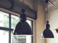 ランプシェードの上部分にはお鍋を2つ重ねたようなボックスがあります。これは店舗や工場などの電圧の高い場所で使う時のための変圧器を内蔵する場所ですが、あえてそのまま再現しインダストリアルな雰囲気を出しています。