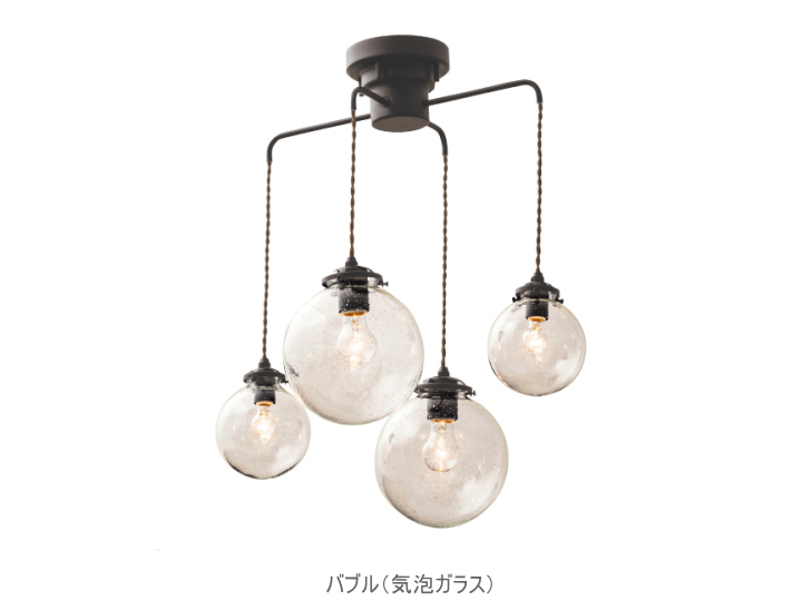 大小2種類のサイズをあわせた4灯オレリアガラスライトです。