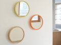 明るいカラーリングがかわいい丸型のウォールミラー。暮らしに溶け込む心地よさのバランスを追求しました。