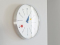 「赤」「青」「黄」の3原色をバランスよく配置し、「丸」と「四角」で時間を表す少しアーティスティックな掛け時計です。
