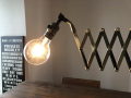 1)アンティークテイストの電球付きシザーブラケットランプ。