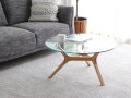 天然木をふんだんに使った円形ガラステーブル。細かなディテールに配慮されたデザインは、ワンランク上のリビング空間を作り出してくれます。